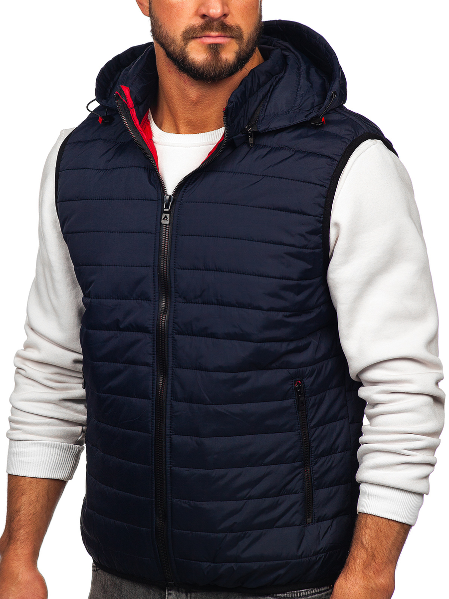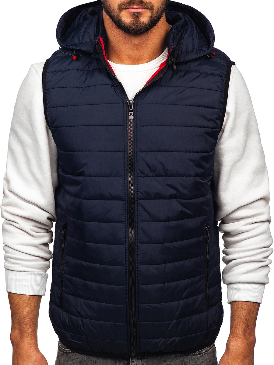 Αξιολογήσεις χρηστών για το Μπλε σκούρο καπιτονέ ανδρικό γιλέκο με κουκούλα Bolf 7157
