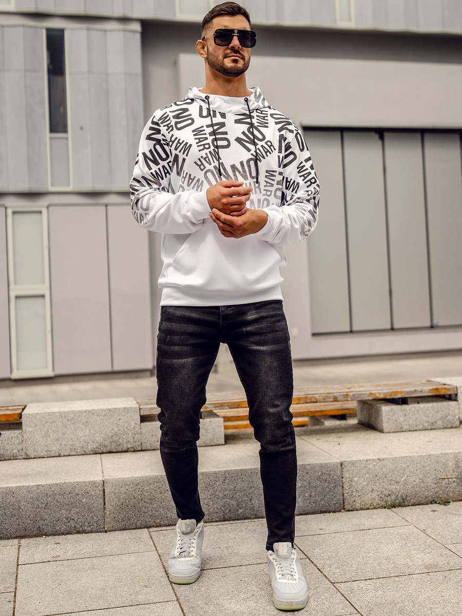 Αξιολογήσεις χρηστών για το Μαύρη και λευκή ανδρική μπλούζα με κουκούλα kangaroo με στάμπα Bolf 8B998