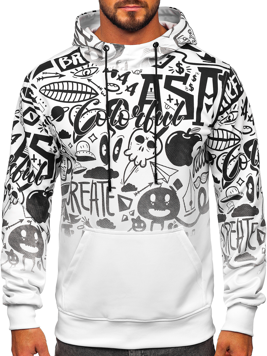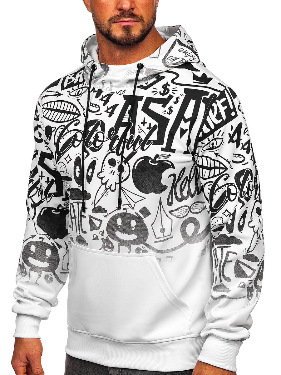 Αξιολογήσεις χρηστών για το Λευκή ανδρική μπλούζα με κουκούλα kangaroo με στάμπα Bolf 8B995