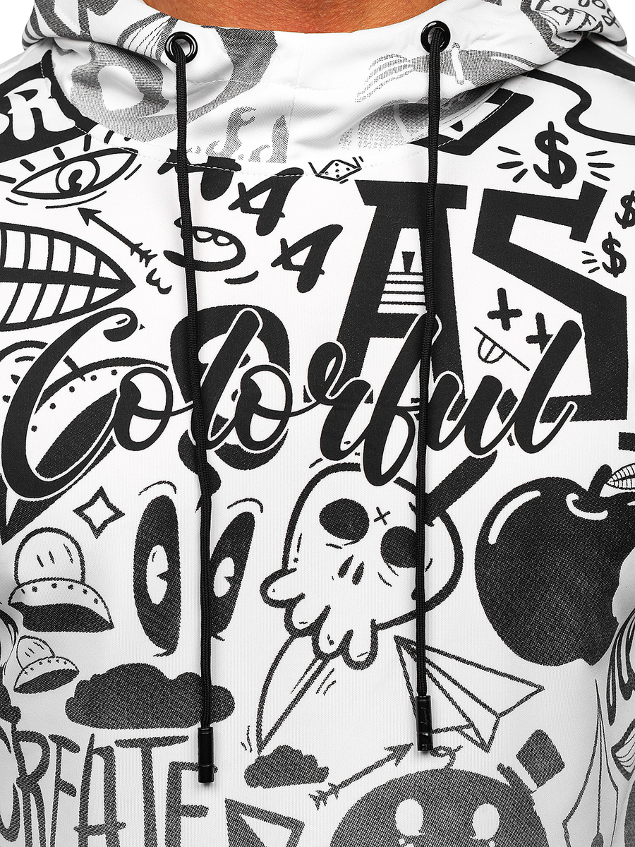 Αν σας αρέσουν τα ασυνήθιστα, μοναδικά σχέδια, το ανδρικό φούτερ Bolf 8B995 πρέπει να βρίσκεται στην γκαρνταρόμπα σας! Με το ασπρόμαυρο χρώμα του, το φούτερ φαίνεται κλασικό, αλλά το πλούσιο, εντυπωσιακό μοτίβο του προσδίδει λίγη τρέλα και σίγουρα θα σας κάνει να ξεχωρίσετε στο πλήθος. Το φούτερ φοριέται πάνω από το κεφάλι και έχει ρυθμιζόμενη κουκούλα που θα σας προστατεύει από τη βροχή και τον παγετό τις πιο κρύες μέρες. Είναι ζεστό και δεν περιορίζει την κίνηση. Το υλικό από το οποίο είναι κατασκευασμένο είναι ευχάριστο στην αφή. Επιπλέον το φούτερ έχει μια ευρύχωρη τσέπη καγκουρό ενσωματωμένη στο μπροστινό μέρος. Θα φαίνεται υπέροχο με παντελόνι φόρμας και γιλέκο.