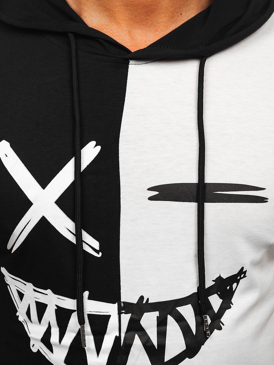 Αξιολογήσεις χρηστών για το Μαύρο-λευκό ανδρικό t-shirt με τύπωμα με κουκούλα Bolf 8T981