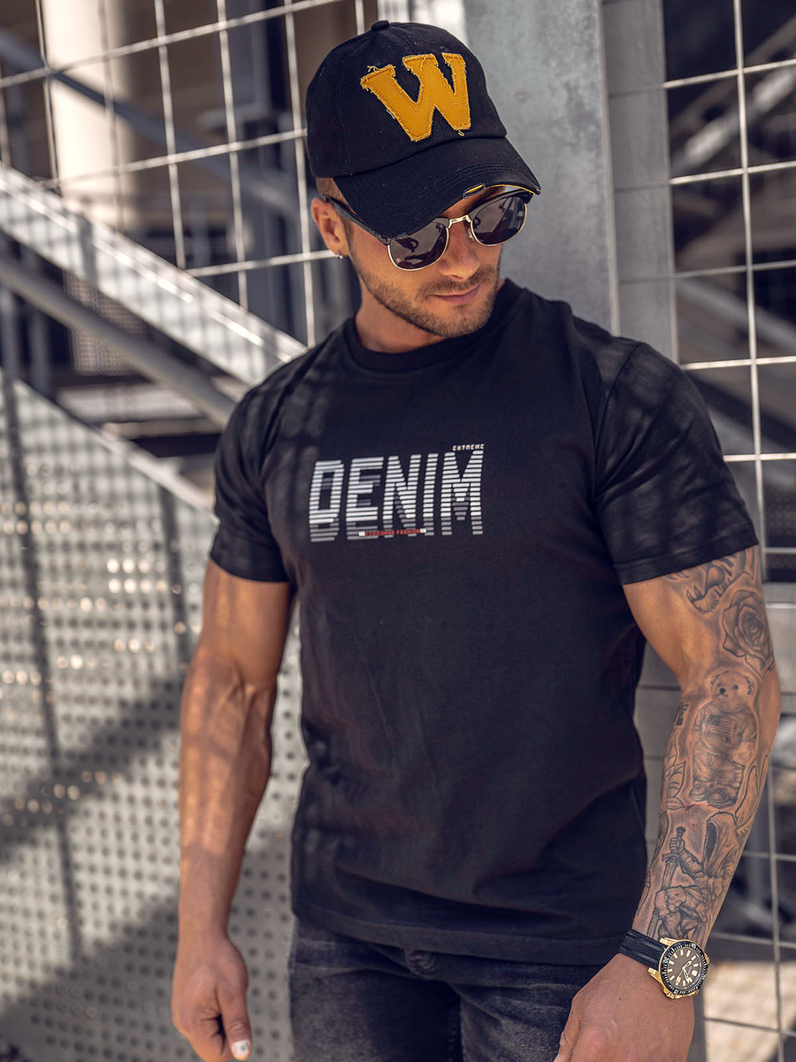 Μαύρο βαμβακερό ανδρικό t-shirt με τύπωμα Bolf 14787