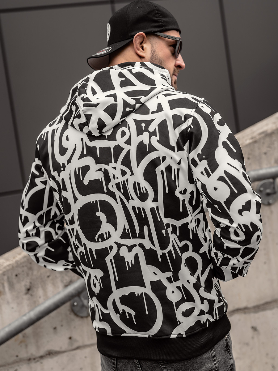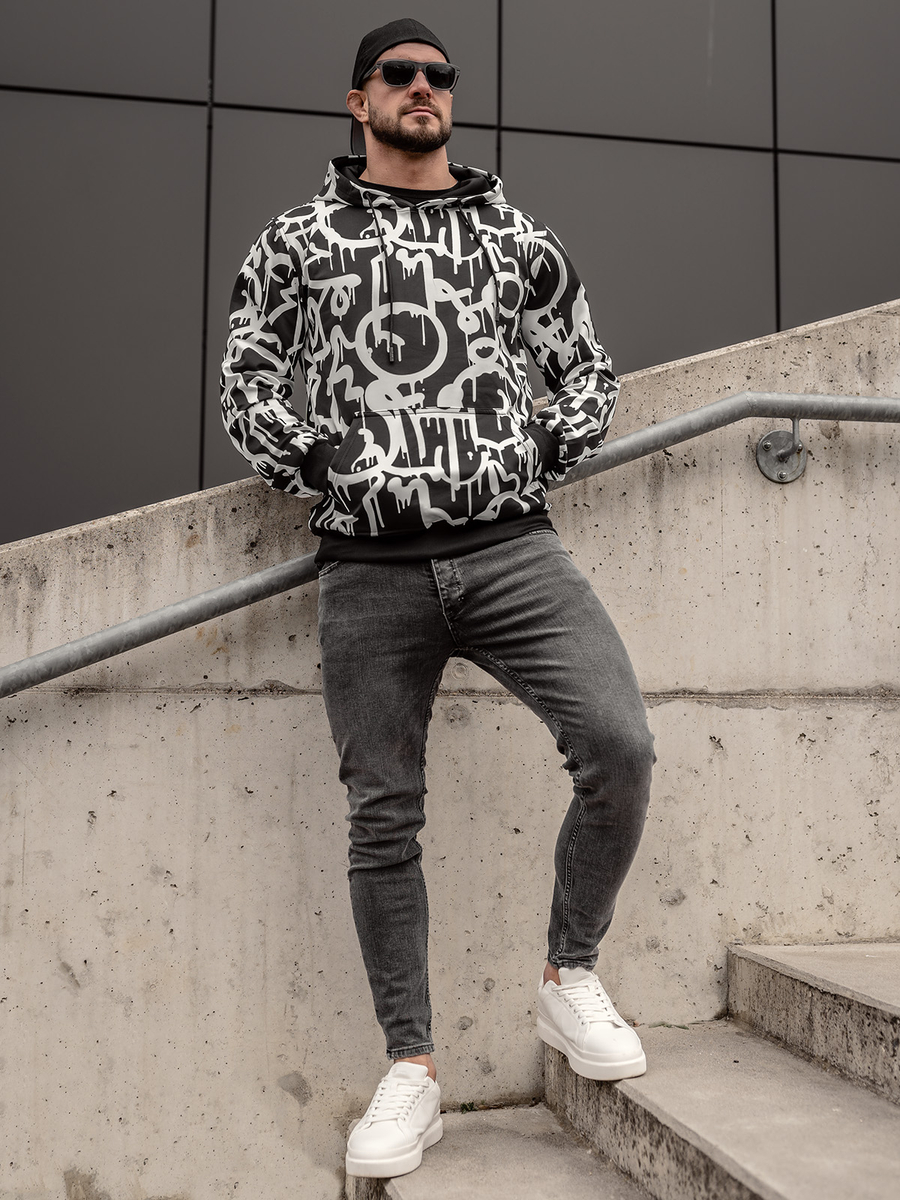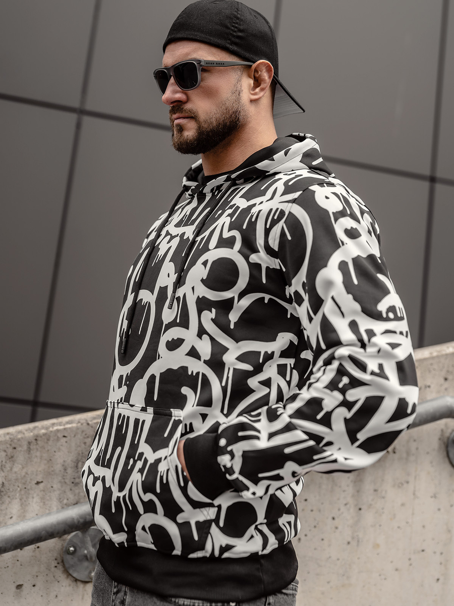 Αξιολογήσεις χρηστών για το Μαύρη και λευκή ανδρική μπλούζα με κουκούλα kangaroo με στάμπα Bolf 8B1152A