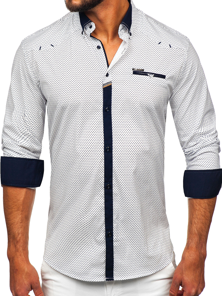 Αξιολογήσεις χρηστών για το Λευκό κομψό ανδρικό πουκάμισο με μακριά μανίκια Bolf 19603