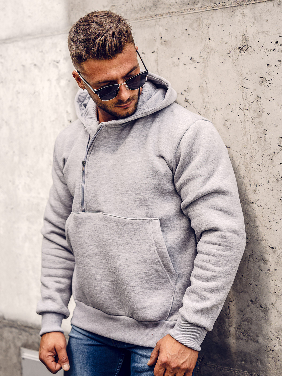Σκούρο γκρι χοντρό ανδρικό φούτερ με κουκούλα Bolf 02A
