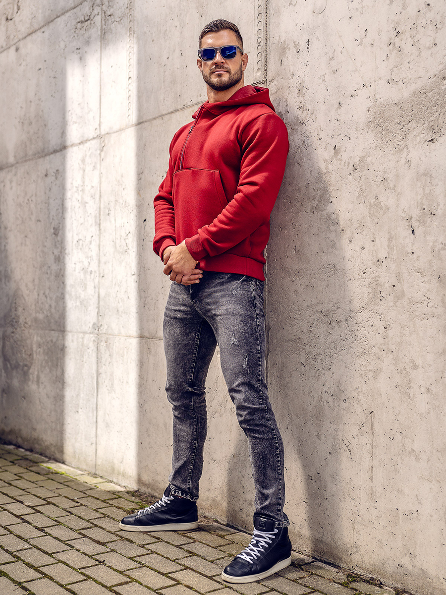 Μπορντό ανδρική μπλούζα με κουκούλα Bolf 02A είναι η πρότασή μας για τις πιο κρύες μέρες. Διαθέτει κουκούλα και διαχρονική τσέπη τύπου καγκουρό. Είναι κατασκευασμένη από πολύ ευχάριστο στην αφή υλικό. Αποτελείται από 70% βαμβάκι και 30% πολυεστέρα. Διατίθεται σε αρκετές ενδιαφέρουσες χρωματικές εκδοχές, ώστε να την ταιριάξεις με κάθε στυλ. Το κάτω μέρος και τα μανίκια της μπλούζας τελειώνουν με φαρδιά μανσέτα, η οποία εξασφαλίζει ζεστασιά τις πιο κρύες μέρες. Θα την αγαπήσεις τόσο πολύ που θα σε συνοδεύει σε κάθε εποχή του χρόνου. Είναι ιδανική για βόλτα ή εκδρομή εκτός πόλης με φίλους. Με τα δικά μας παντελόνια φόρμας αυτή η μπλούζα θα δημιουργήσει τον τέλειο συνδυασμό για δραστήρια άτομα. Για την καθημερινότητα, η μπλούζα θα δείχνει άψογη με τζιν και δερμάτινο μπουφάν.