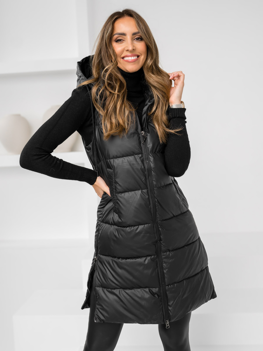 Αξιολογήσεις χρηστών για το Μαύρο μακρύ καπιτονέ γυναικείο γιλέκο Bolf R8212