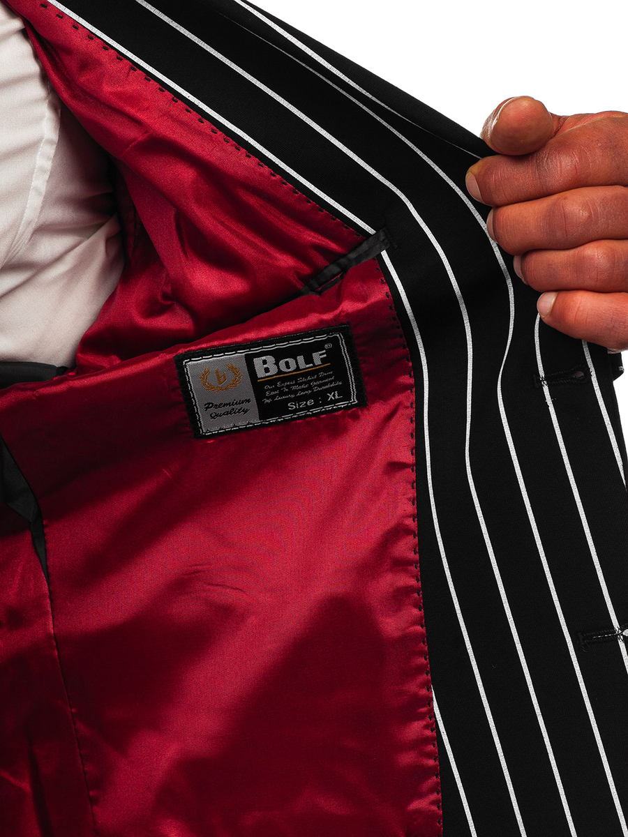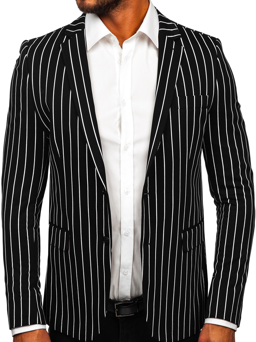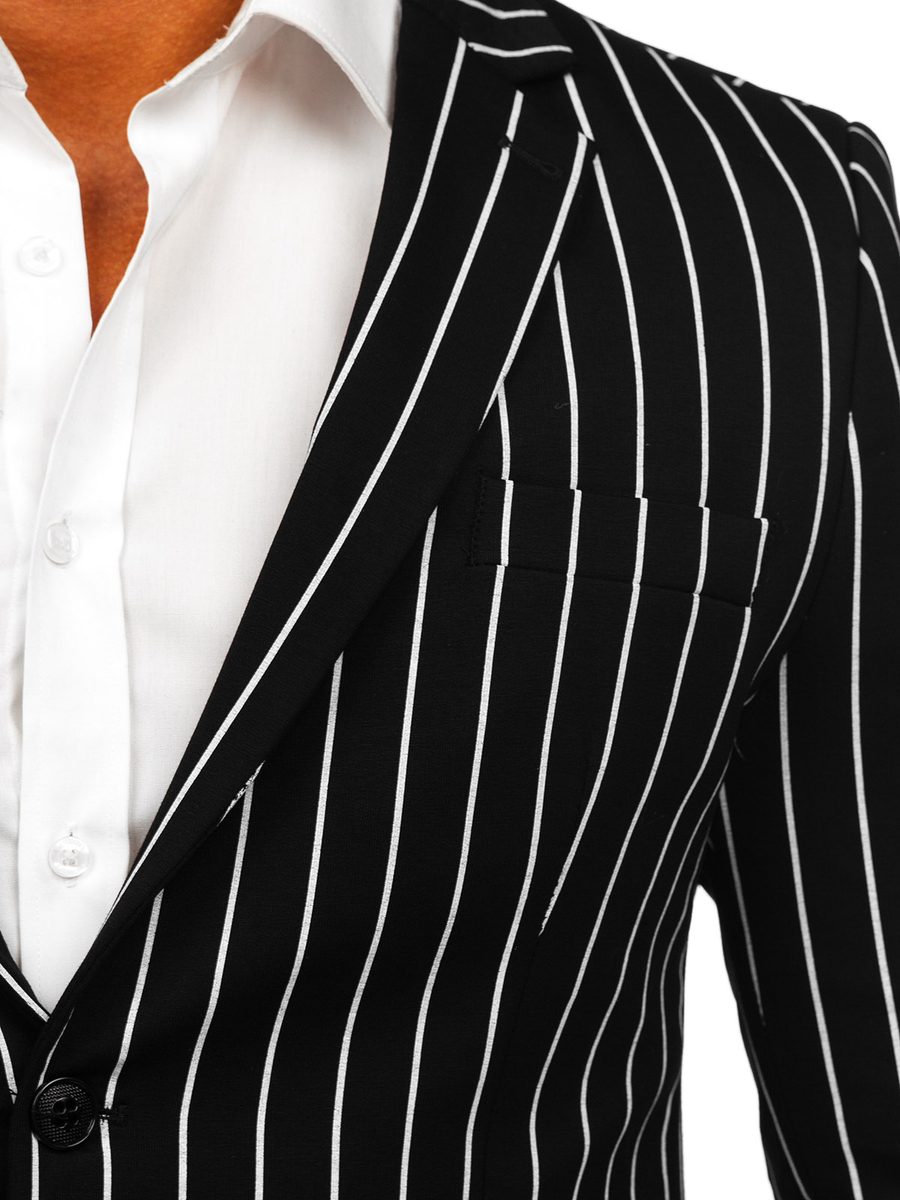 Μαύρο-λευκό ριγέ ανδρικό casual σακάκι Bolf 1652