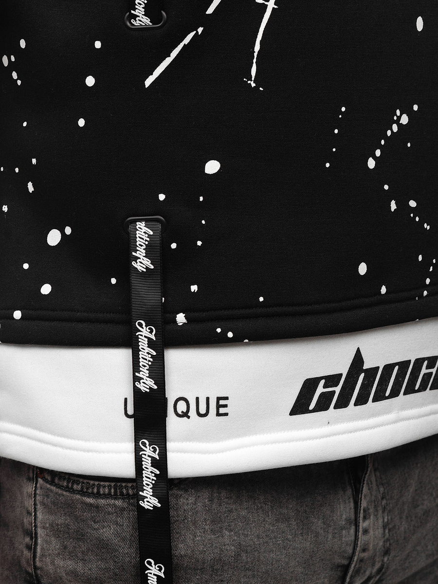 Μαύρο ανδρικό φούτερ με κουκούλα με στάμπα Bolf LJ0586A