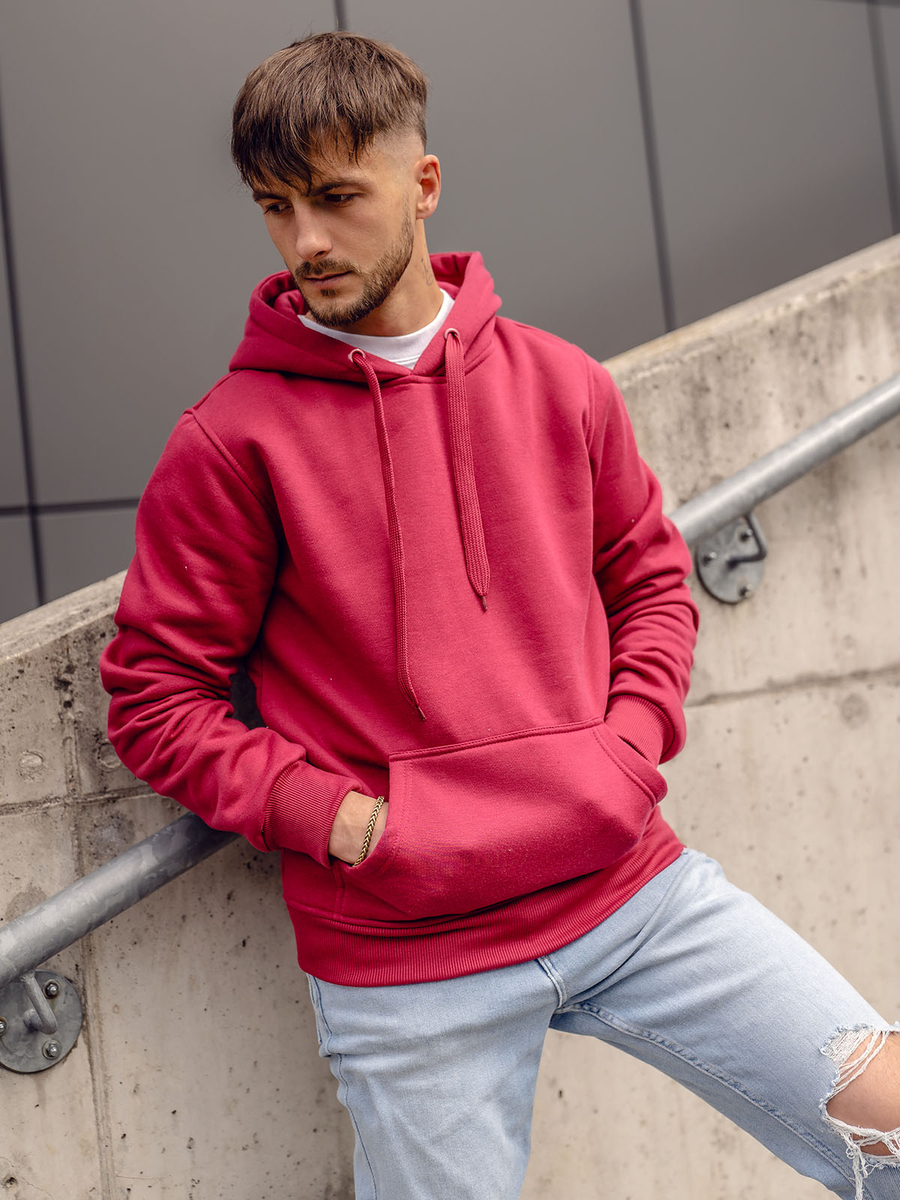 Σκούρο μπορντό ανδρικό φούτερ με κουκούλα 2009A. Το προϊόν διαθέτει ρυθμιζόμενη κουκούλα και πρακτική τσέπη καγκουρό. Το απλό κόψιμο και τα φινιρίσματα του, όπως τα λάστιχα, του δίνουν σπορ χαρακτήρα. Το φούτερ είναι κατασκευασμένο από μαλακό πλεκτό ύφασμα. Αυτό το μοντέλο ξεχωρίζει για τα ενδιαφέροντα χρώματά του.