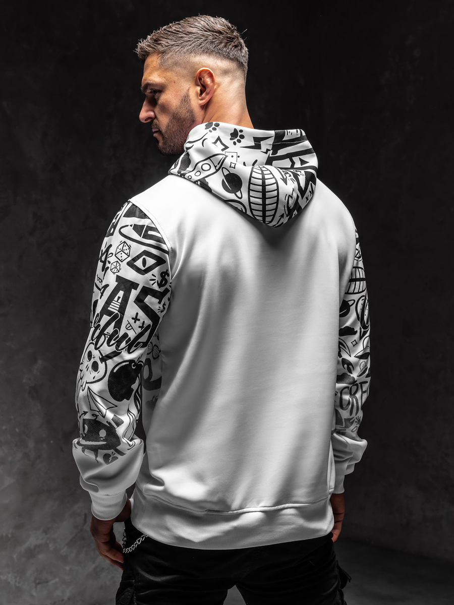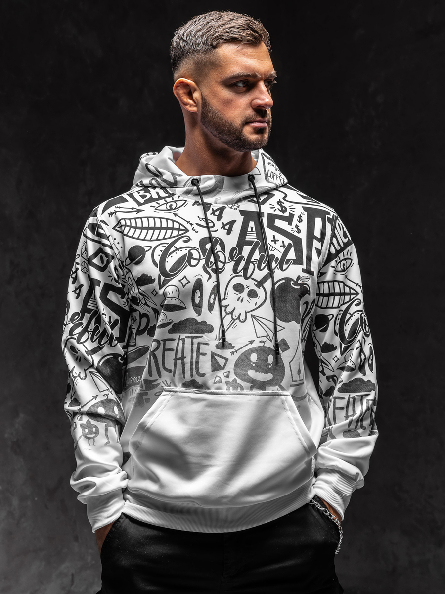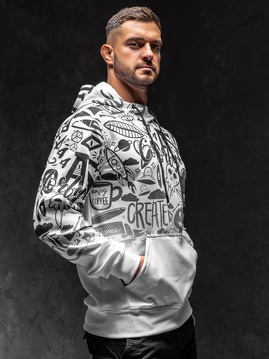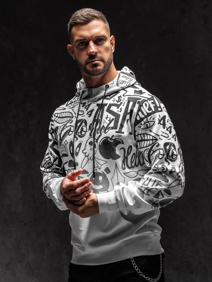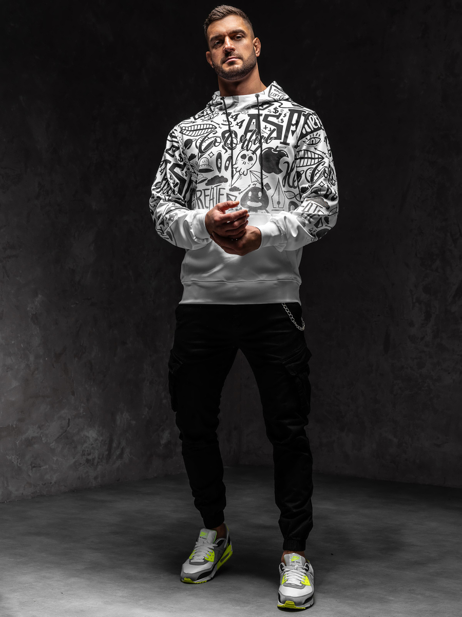 Αξιολογήσεις χρηστών για το Λευκό ανδρικό φούτερ καγκουρό με κουκούλα και στάμπα Bolf 8B995A1