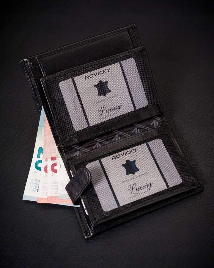 Κομψό, δερμάτινο ανδρικό πορτοφόλι χωρίς κλείσιμο - Rovicky