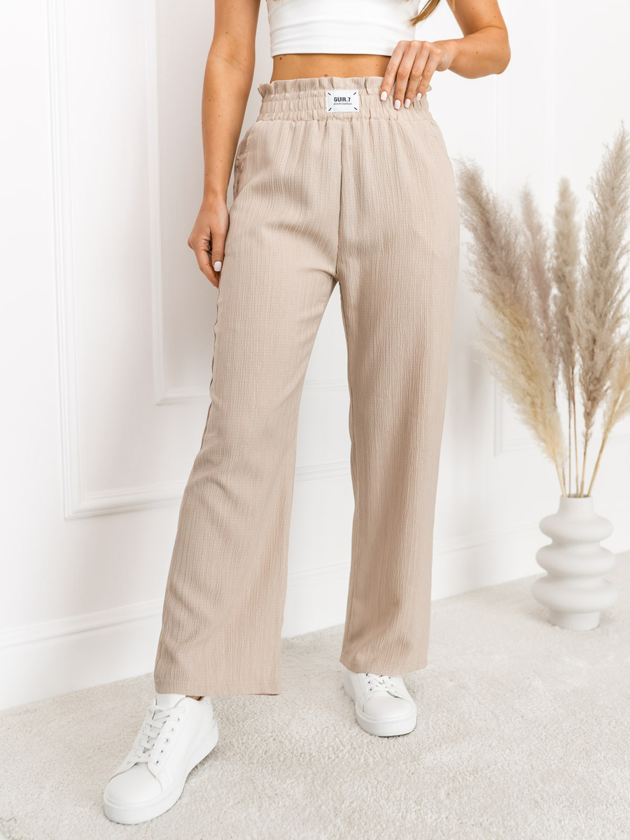 Μπεζ γυναικείο φαρδύ υφασμάτινο παντελόνι Bolf W7961