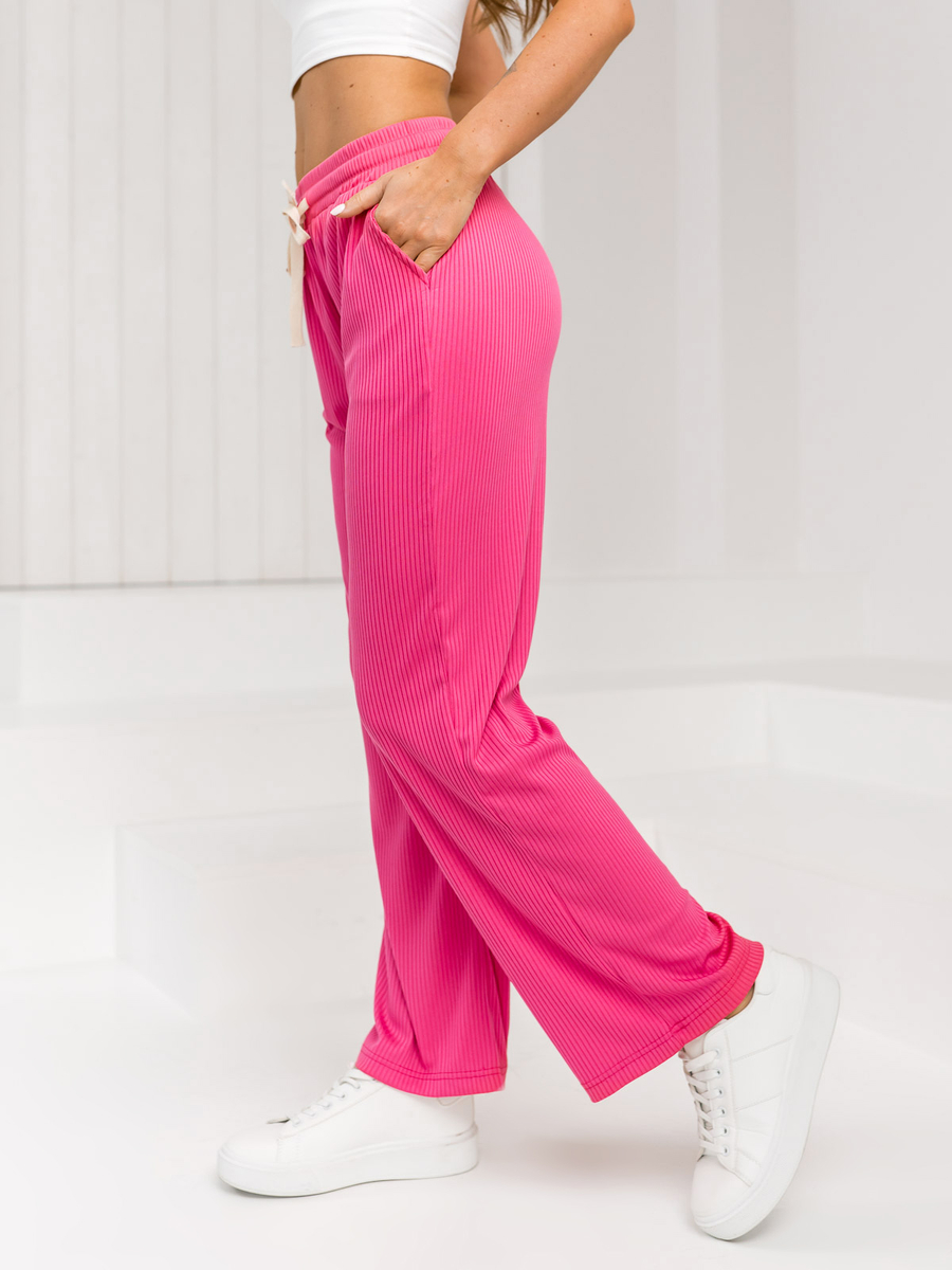 Αξιολογήσεις χρηστών για το Ροζ γυναικείο φαρδύ υφασμάτινο παντελόνι Bolf W7958