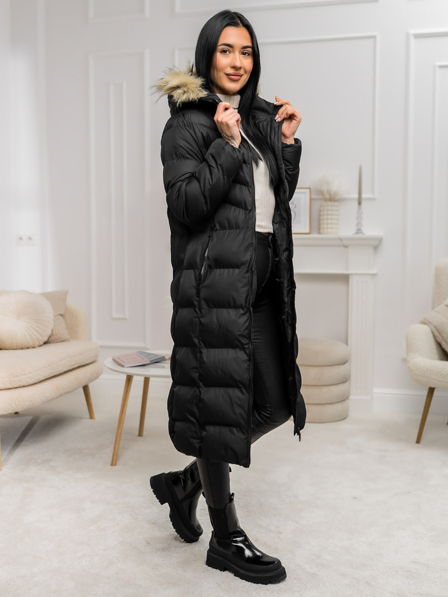 Αξιολογήσεις χρηστών για το Μαύρο μακρύ καπιτονέ γυναικείο μπουφάν παλτό χειμωνιάτικο με κουκούλα Bolf 5M3228