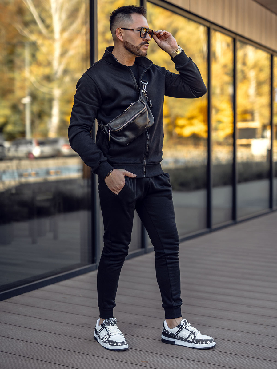 Η μαύρη ανδρική φόρμα Bolf 10385A2 είναι ένα αθλητικό σετ που περιλαμβάνει φούτερ και αθλητικό παντελόνι. Το φούτερ κλείνει με φερμουάρ και διαθέτει εξωτερικές τσέπες. Το παντελόνι ρυθμίζεται στη μέση με ισχυρό λάστιχο και κορδόνι και διαθέτει δύο εξωτερικές τσέπες. Η σπορ εμφάνιση αποκτά από απλό, εφαρμοστό κόψιμο. Το προϊόν είναι κατασκευασμένο από μαλακό, ευχάριστο στην αφή ύφασμα. Το σετ φόρμας μπορεί να αποτελέσει μια ευέλικτη βάση για τη δημιουργία καθημερινών ή αθλητικών εμφανίσεων. Τόσο το φούτερ όσο και το παντελόνι μπορούν να συνδυαστούν με άλλα ρούχα, δίνοντάς σας πολλές επιλογές για τη δημιουργία καθημερινών εμφανίσεων. Το σετ ταιριάζει απόλυτα με μπλουζάκι με ένα ελαφρύ μπουφάν μετάβασης ή αθλητικό μπουφάν.