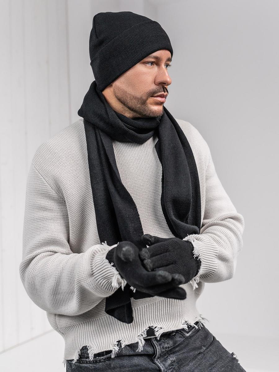 Μαύρο ανδρικό χειμερινό σετ - σκούφος, κασκόλ, γάντια Bolf 2025007