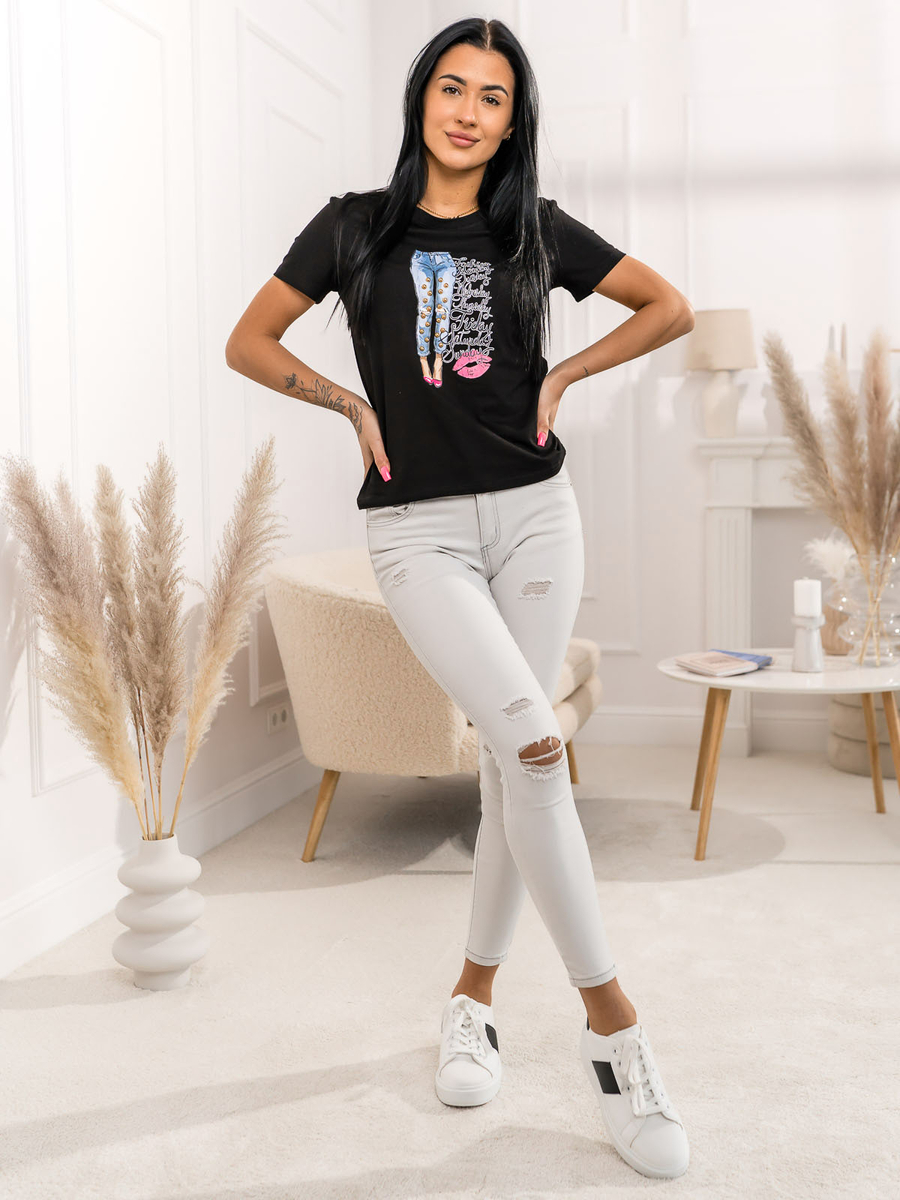 Μαύρο γυναικείο t-shirt με στάμπα Bolf 95T2507